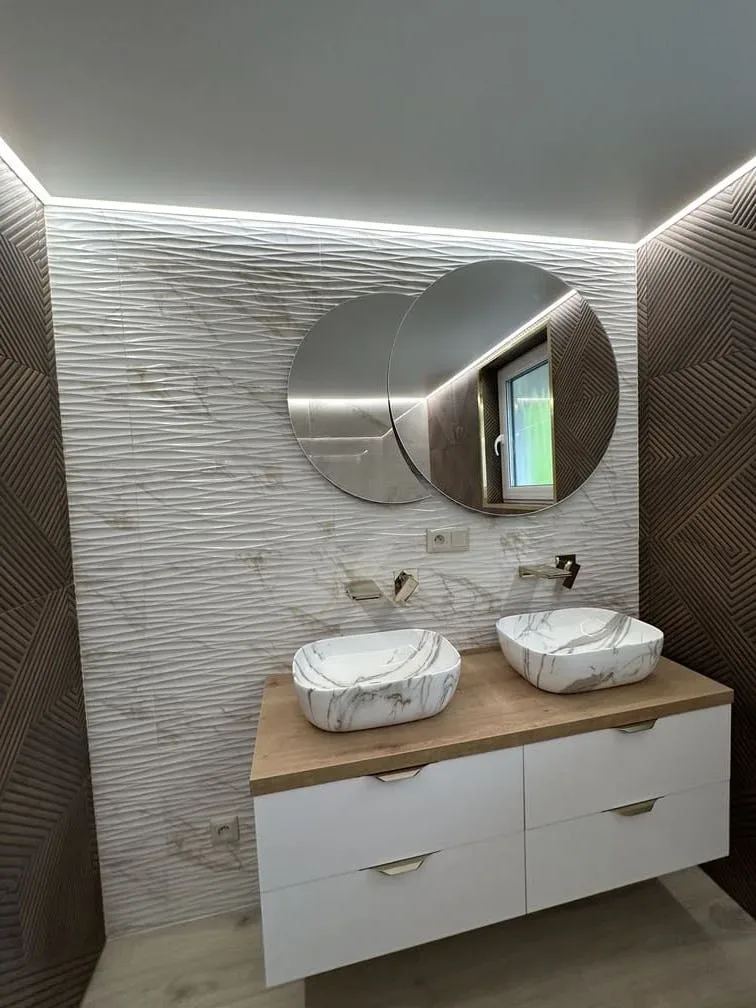 Možností, ako osvetliť kúpeľňu moderne, funkčne a dizajnovo, je dnes viac než kedykoľvek predtým. Či už preferujete minimalistické integrované LED riešenia, dominantné stropné svietidlá na mieru, kreatívne lineárne línie alebo luxusný translucentný svetelný strop, všetko je otázkou správneho návrhu a kvalitnej realizácie. Dôležité je, aby osvetlenie nebolo len doplnkom, ale premyslenou súčasťou celého interiéru. Správnou kombináciou jednotlivých prvkov dokážete vytvoriť kúpeľňu, ktorá bude nielen funkčná, ale aj výnimočná. Inšpirovať sa môžete aj našimi realizáciami. Počas rokov sme navrhli a zrealizovali množstvo kúpeľní s rôznymi typmi osvetlenia. Každý projekt je pre nás jedinečný a vždy hľadáme riešenie, ktoré dokonale zapadne do priestoru aj predstáv klienta.