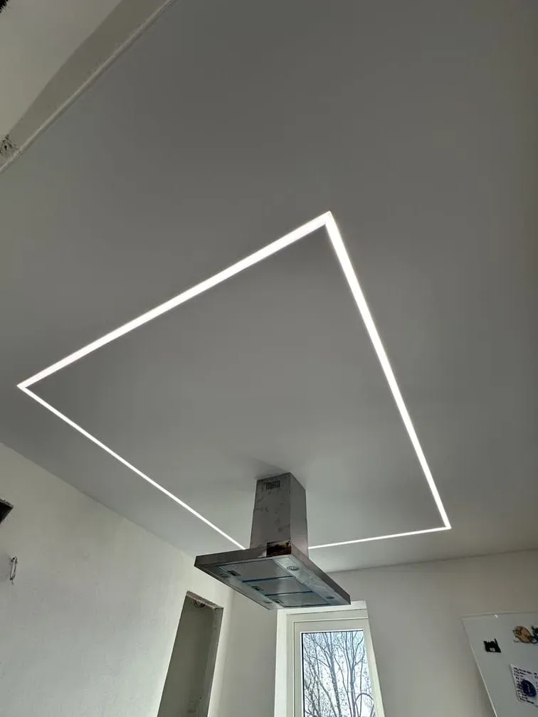 V rámci tohto projektu sa klient rozhodol pre integrované lineárne LED osvetlenie, ktoré vytvorilo obdĺžnikovitý tvar, aby sa dosiahlo rovnomerné osvetlenie celej kuchyne. Navyše osvetlenie plní aj dekoratívnu funkciu, čím dodáva priestoru moderný a elegantný charakter.